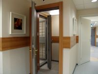 Ригельная система запирания выполнена из отдельных ригелей из высокопрочной стали, либо в виде единого ригеля во всю высоту двери. Тип - распашной.